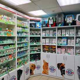При клинике работают ветеринарная аптека и зоомагазин, где можно купить лекарства и корма для животных. В ветеринарной аптеке представлен хороший ассортимент лечебных препаратов для животных от известных производителей. Кроме того, в наличии есть ветеринарные корма, лакомства и биологические добавки. Для питомцев в зоомагазине можно купить амуницию, игрушки, переноски и средства гигиены.